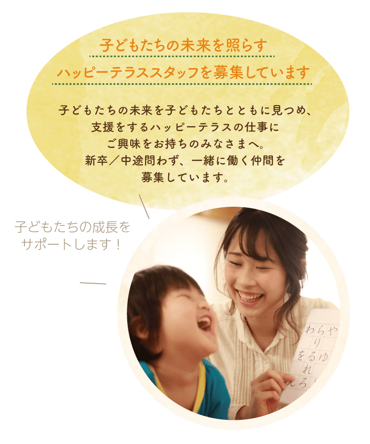 子どもたちの未来を照らすハッピーテラスタッフを募集しています。