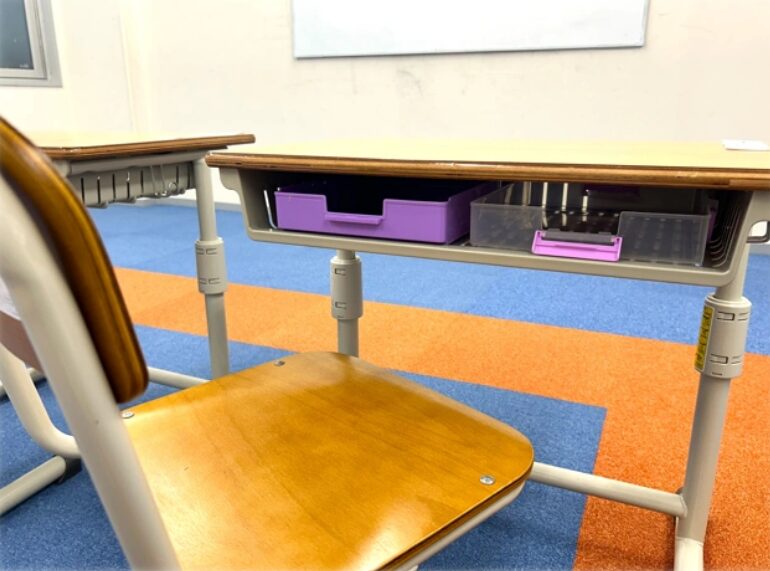 机の上には見えづらいですが、右上に児童のみなさんの名前カードが貼ってあります🏫