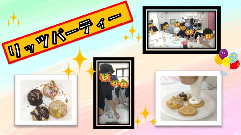 ジュースも飲みながらみんなで机を囲い、リッツパーティーを楽しみました(^^♪