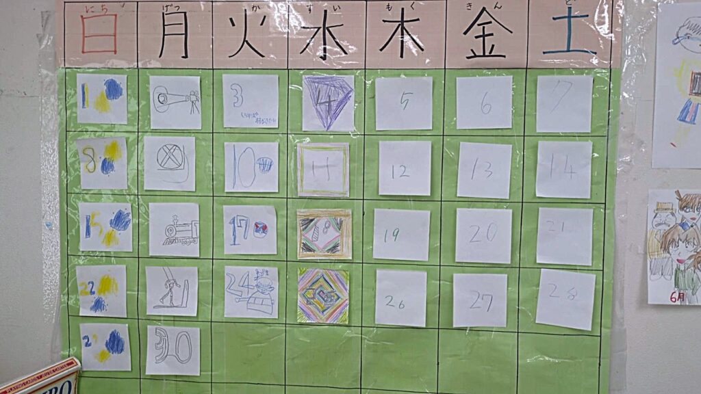 完成したカレンダーは教室内に掲示し、日付の確認の際などに