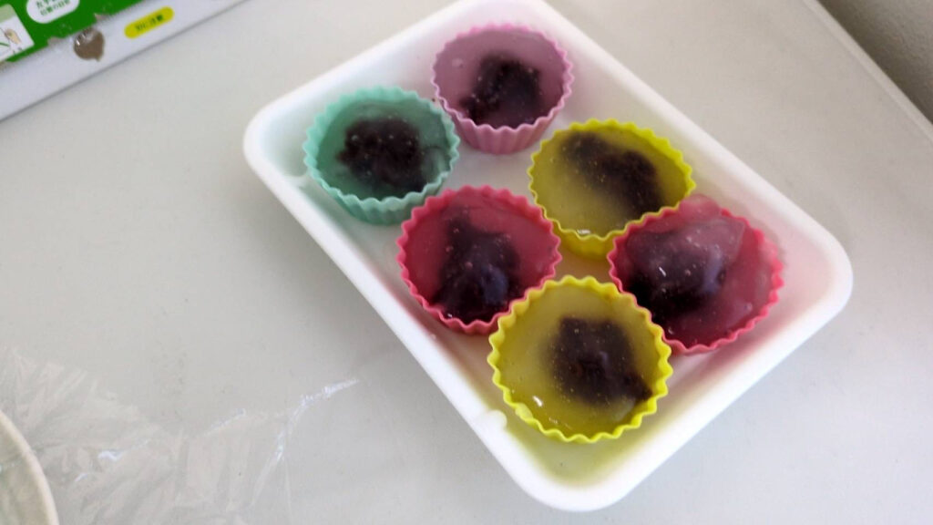 おやつ時に、完成した水まんじゅうをお友達と召し上がっています🥄