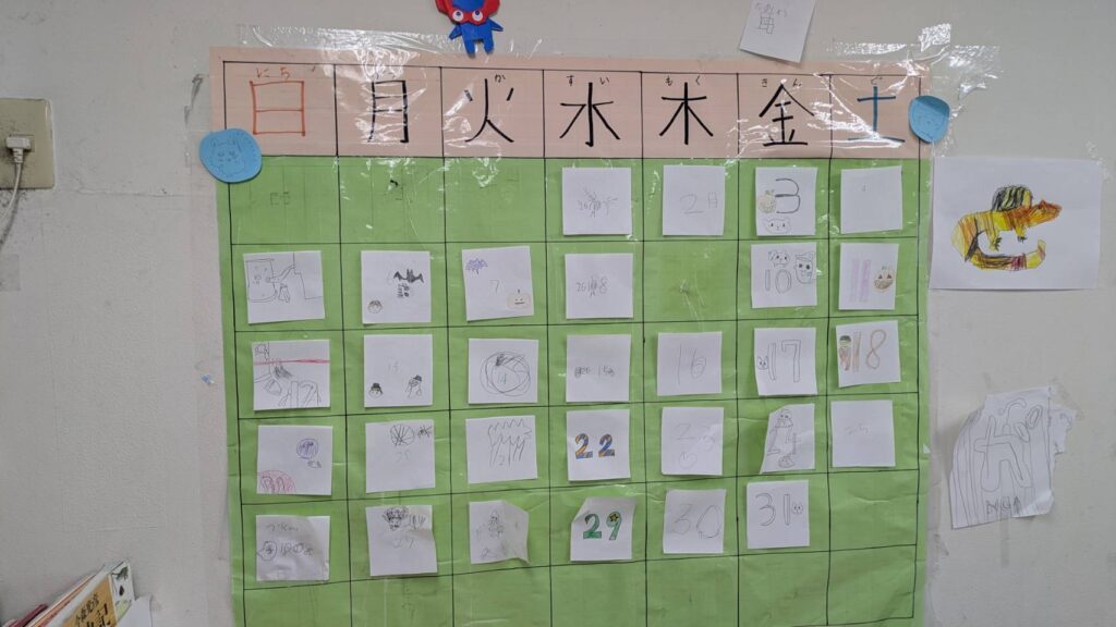 曜日ごとに、担当を決めて、思い思いに数字や絵を描きました🌈
