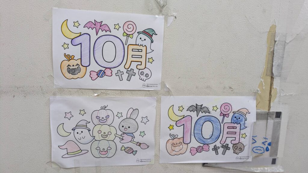 ハロウィーンが近いので、おばけ👻やカボチャの塗り絵を指導員と一緒に楽しみました!