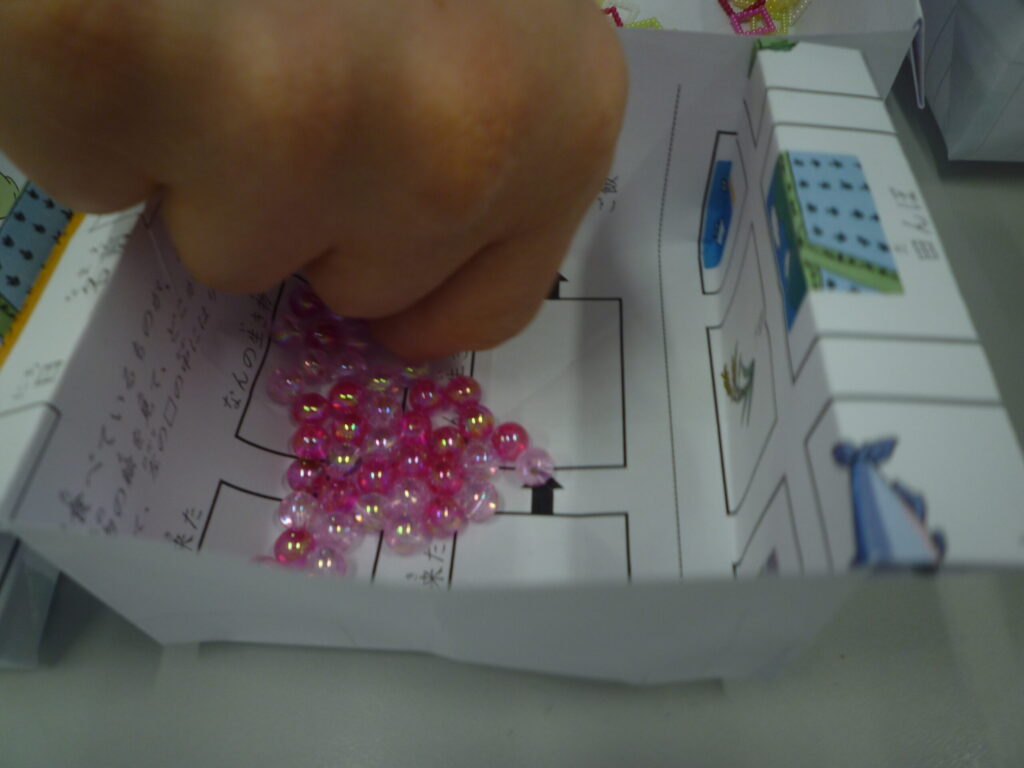 ビーズを指で掴むことは指先の微細運動にも繋がります😄