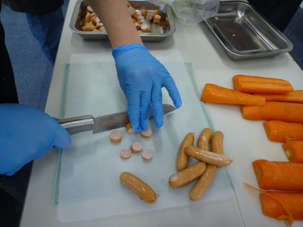 ポトフの主役のソーセージを切ってくれています!🍖