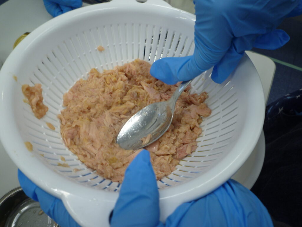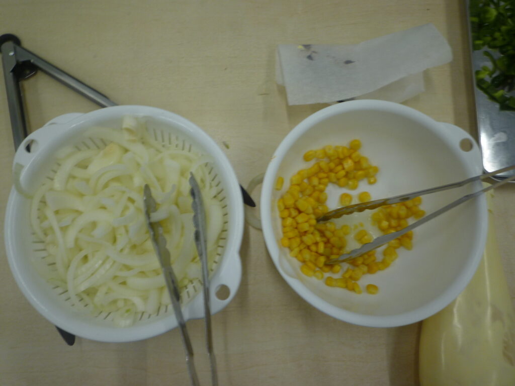 包丁を使うのが難しい生徒はコーンの水切りとシーチキンの油切りを担当してくれました🤭
