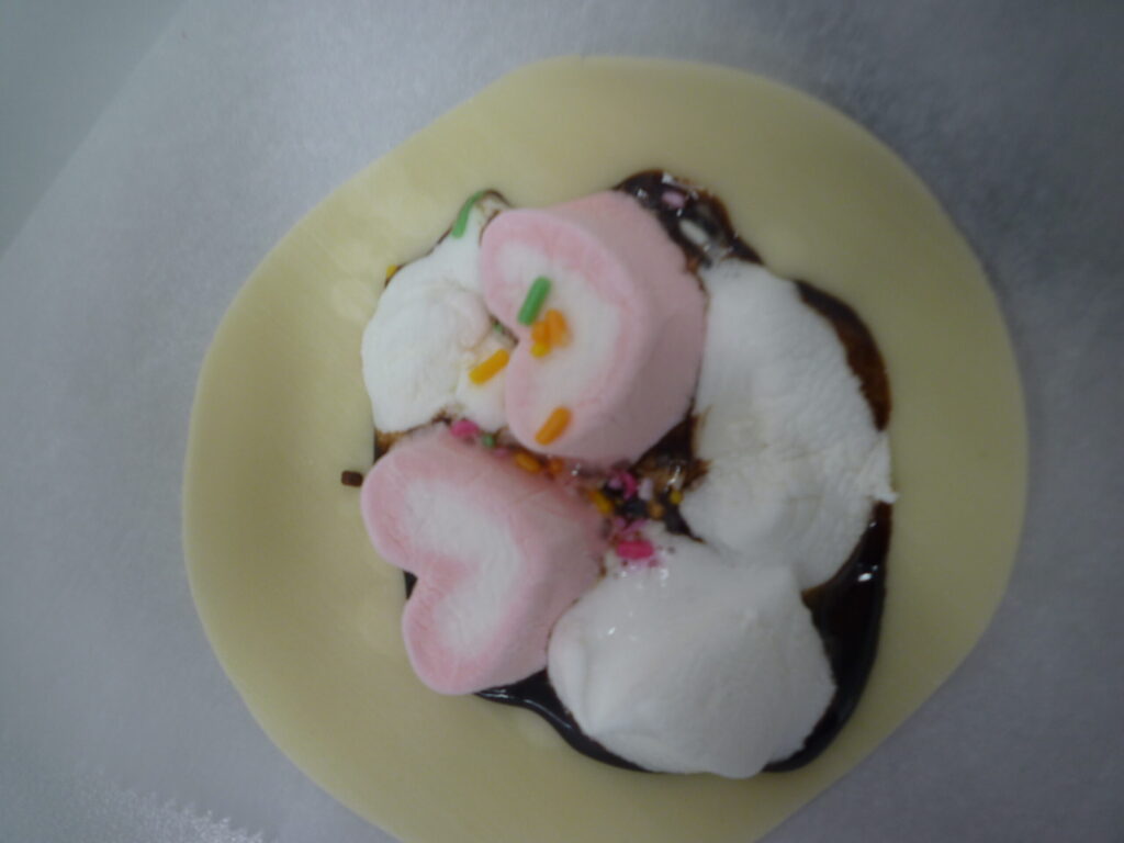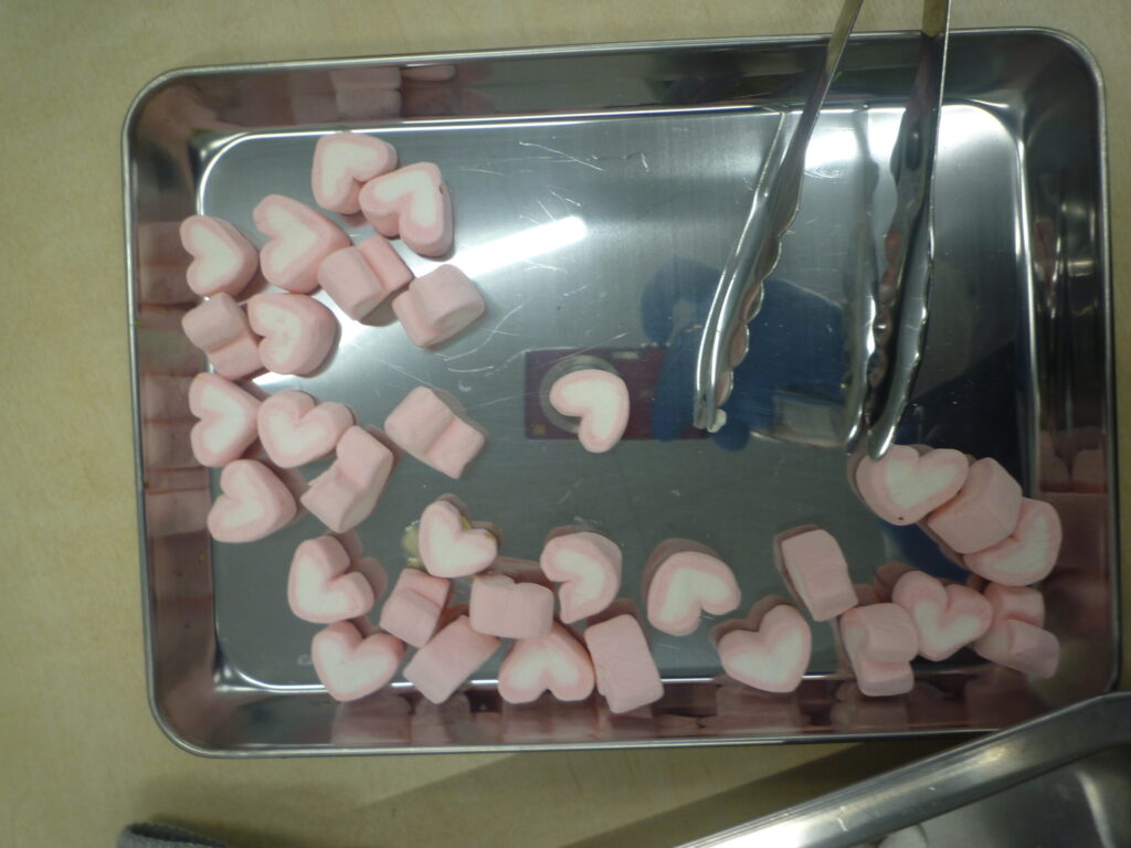 同時にデザートピザも作りました!ハート型のマシュマロに子供たちは興味津々でした😳