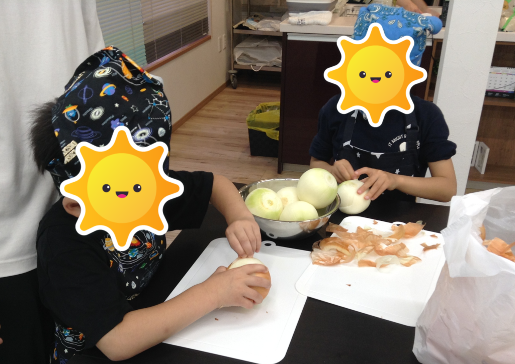 玉ねぎ、じゃがいも、にんじんの皮むきを頑張ってくれました✨