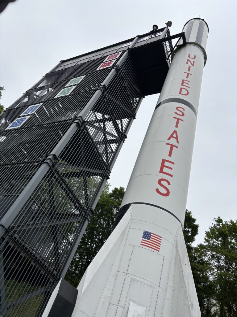 広い園内には、ロケットの模型や恐竜を模した滑り台、