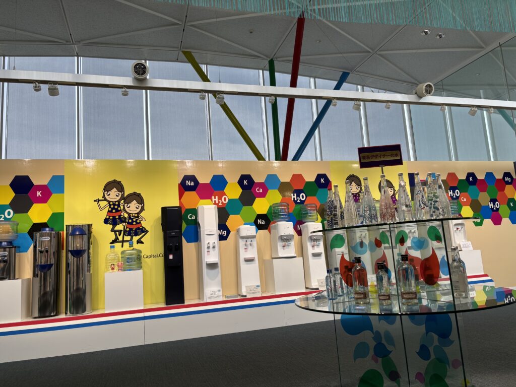 まず初めに、歴代のクリクラや世界の飲料水の展示を見ました。