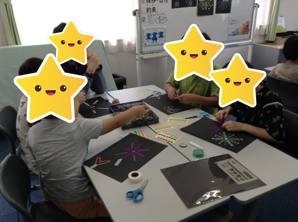 花火を作りました。カラフルな花火や、火が落ちていく花火、生徒たちは