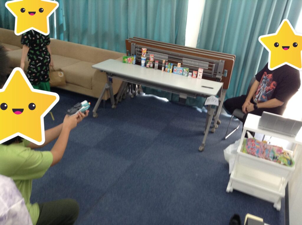 射的、わなげ、お菓子詰め放題ゲーム、たこ焼きなどさまざまな出し物を用意しました。