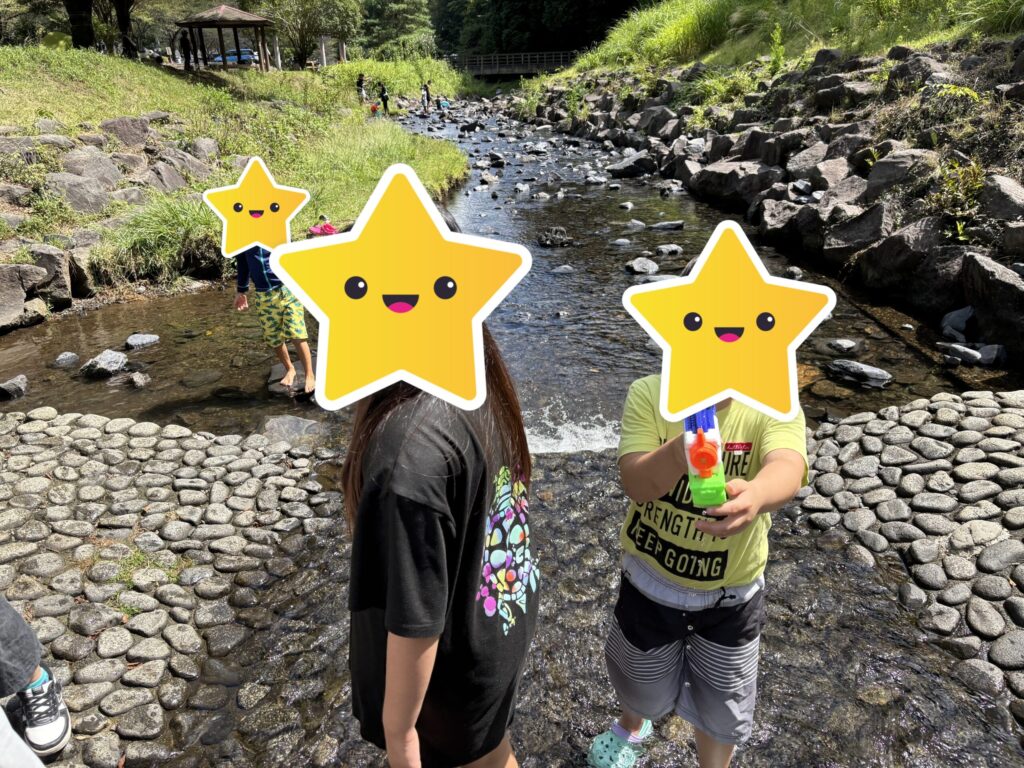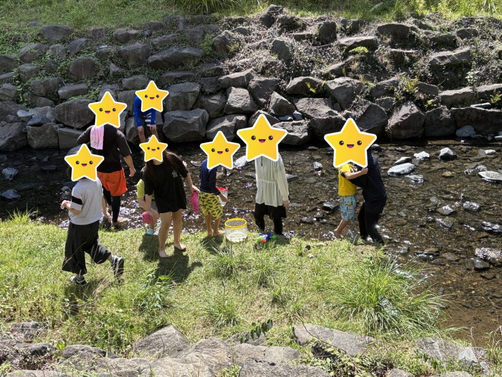 生徒たちは職員に水を掛けたり、川の中にいたカニや小さな魚を採ったり