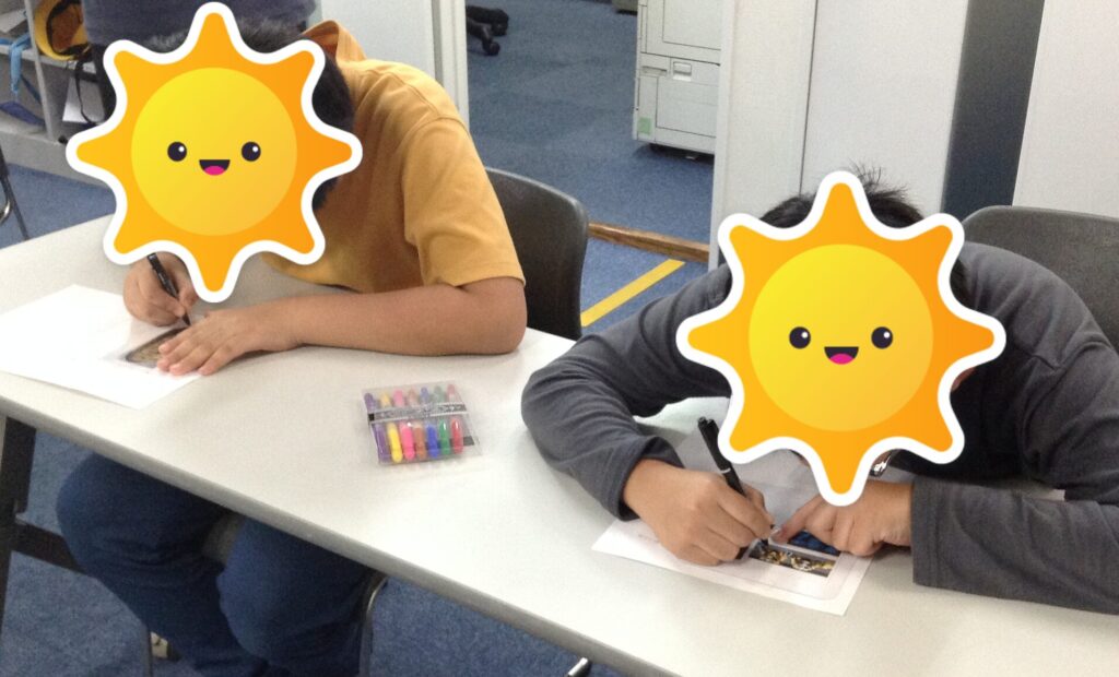 色を塗る作業が多く、挫けそうな子どももいましたが、指導員が色を塗る場所をその色で囲み、