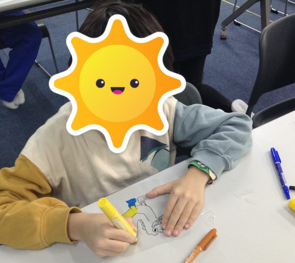 好きな画像を選んで、自分たちで線をなぞり、色を塗って、ハサミで切る作業をしました。