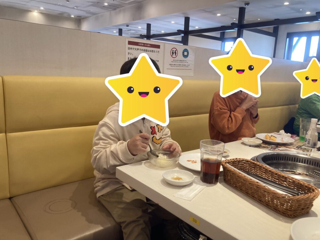 お店に着くと、お寿司や焼き肉、自分で茹でるラーメンなど、