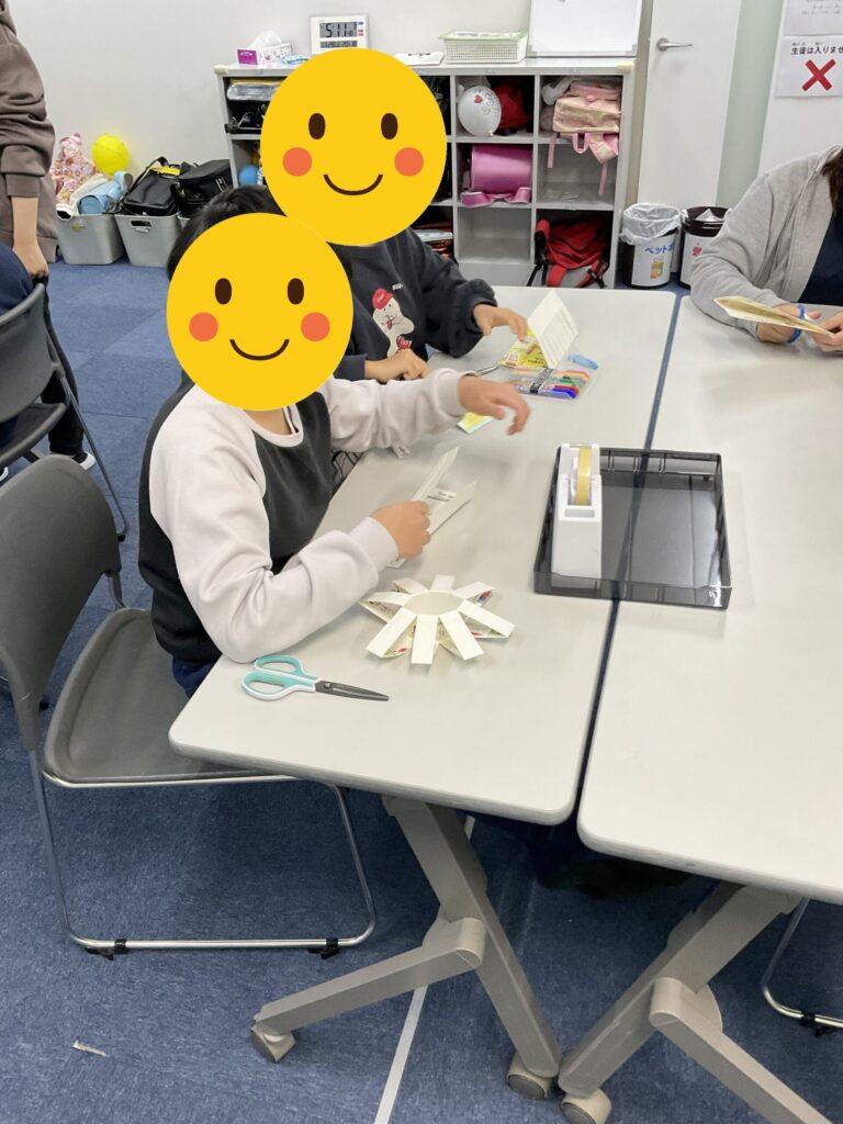 1時間目はブーメランを作りました。