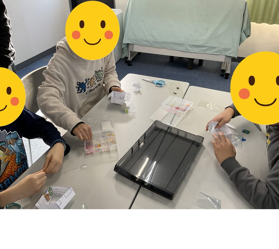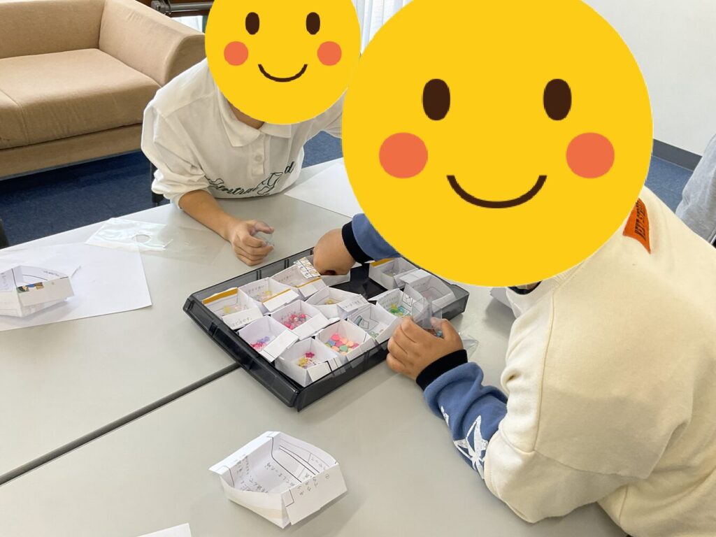 好きな形や色のビーズをたくさん詰め込む生徒もいました。