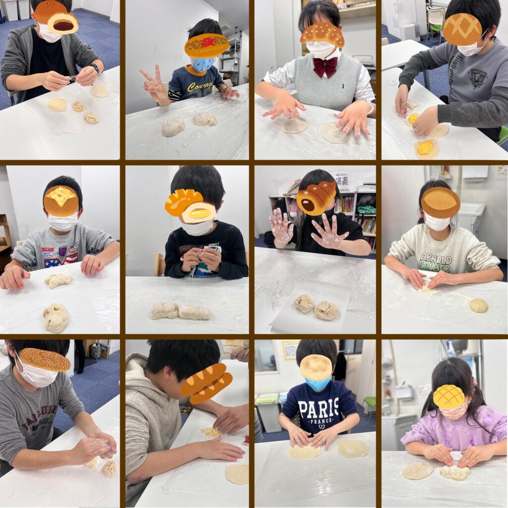 発酵したパンの生地や小麦粉の手触りにみんな興味津々で、チョコレートを包んで美味しいパンを作りました。2つ繋げて電車パンにする子や器用に綺麗に丸く作る子や、なかなかうまく包めずに「先生手伝って〜💦」とさまざまでしたが、みんなしっかり手洗いをしてマスクを着用して取り組むことができました。