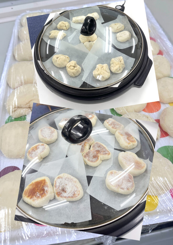 焼き上がってくる匂いにみんな待ちきれない様子でしたが、順番を待って席に座って待つことができました♪
