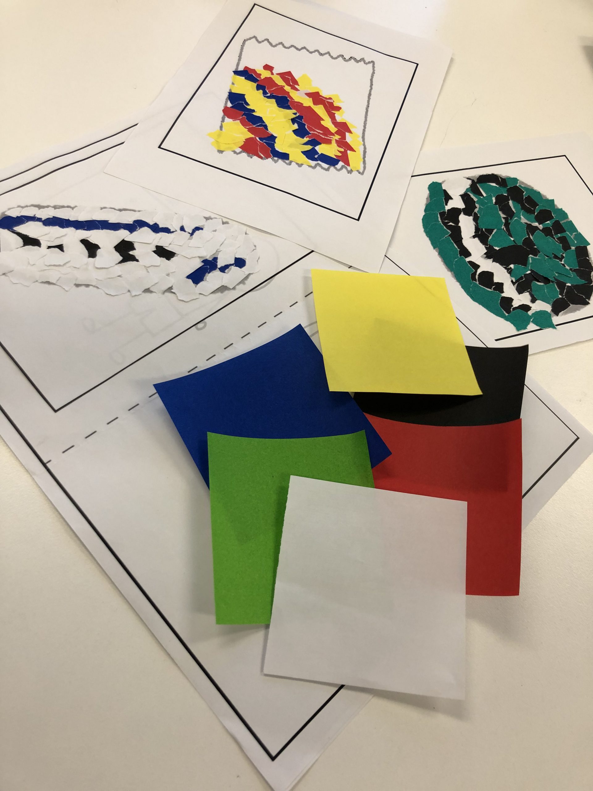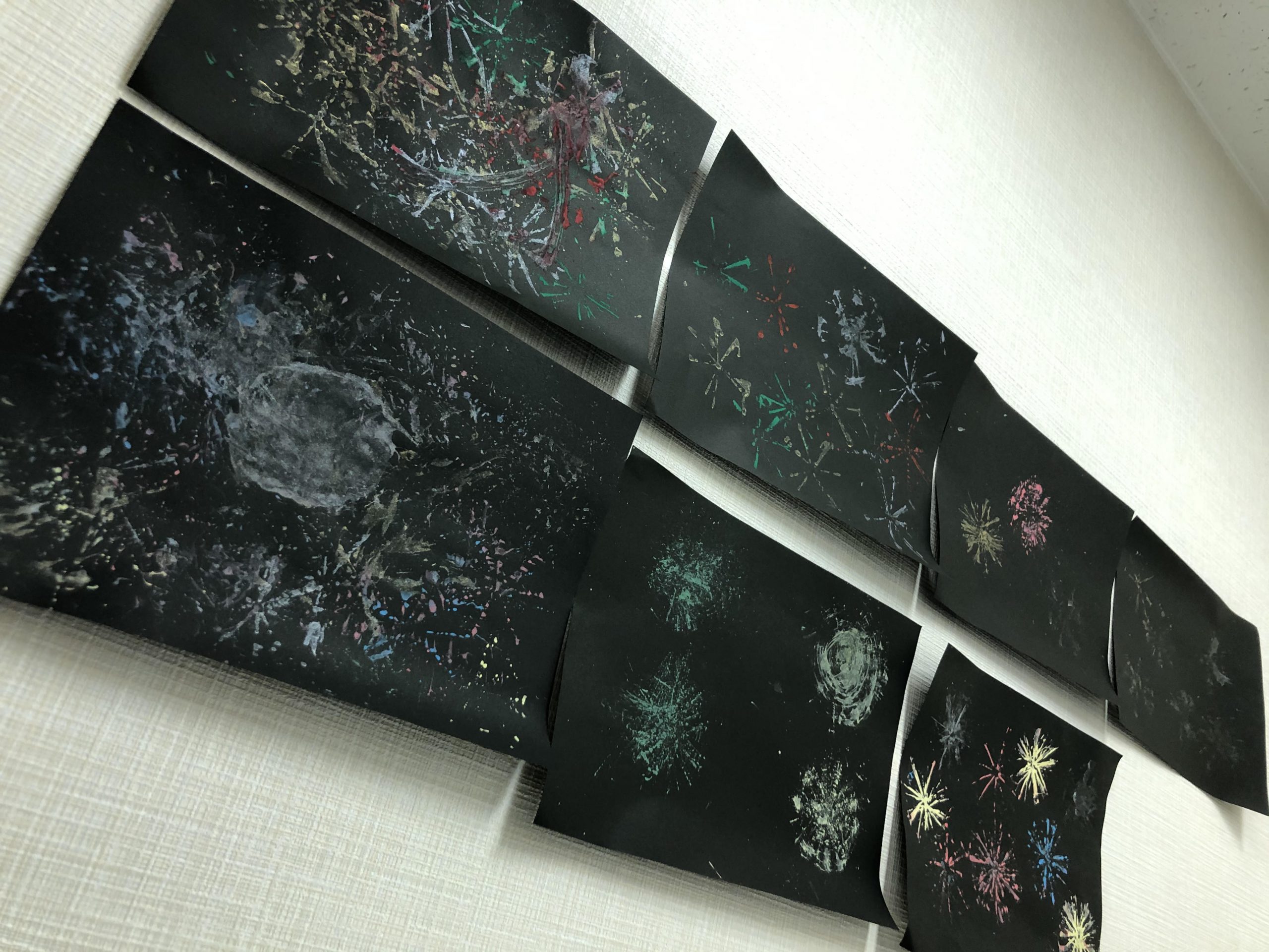 児童二人でペアになり、相談して使用するペンの色を9色の中から4色決めます。決めた色を使って各自でオリジナルのスマホを作成する取り組みを行いました。