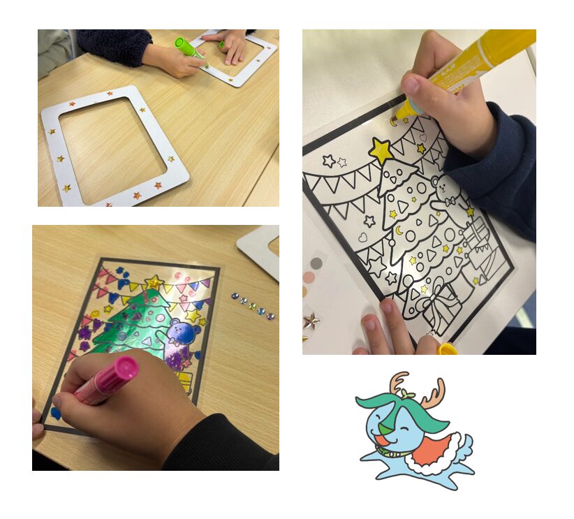 プラバンでツリーやサンタのキーホルダーづくりや、クリスマスにちなんだ協力ゲームに取り組みました。