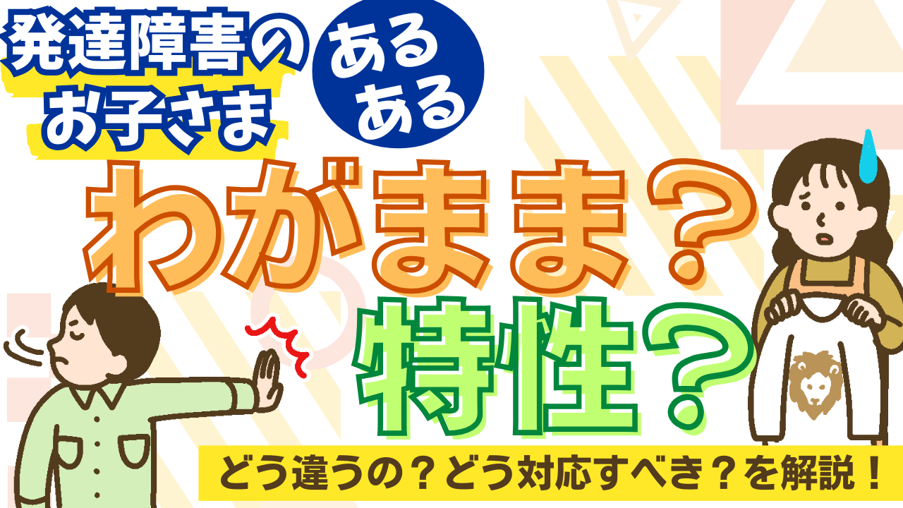 お子さまの困った行動が「わがまま」か「特性」か見分けがつきづらいことがあります。わがままと勘違いされやすい特性と対処法について解説します。
