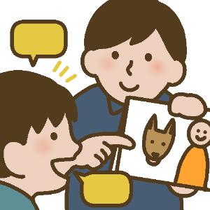 例えば、有意語(意味のある言葉:パパ・ママ・ワンワン等)や2語文(単語2つの組み合わせ:ママとって・ワンワンいた等)を増やす発語や発話を促すサポートをします。発達段階に合わせて、語彙・簡単な文章・指示の理解を促すサポート、要求したいこと・言いたいことを伝える、相手の意図を理解する等、対人でのやり取りを促すサポートをします。