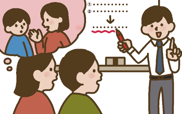 学校や園との連携のしかた それぞれ「講義」「ロールプレイ(実践練習)」「宿題(家庭内での実践)」を通して、理解を深め、テクニックを習得していきます。