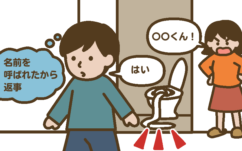 よくある注意フレーズに「○○くん!(名前を呼ぶだけ)」があります。お子さまが不適切な行動をした(やってはいけないことをする・言われたことをやらない等)ときによく使うフレーズですが、これも「名前を言っているだけ」と文字通りに捉えてしまうため、返事だけをしたり反応を示さなかったりすることがあります。名前を呼ぶだけではなく、明確に取るべき行動の指示をすることが必要です。