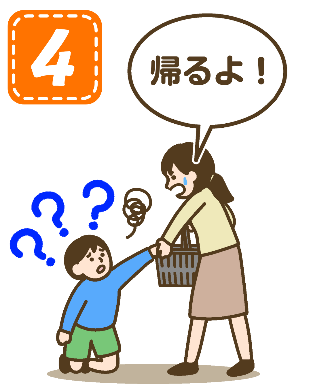 保護者の方にとって「置いて帰るよ」は脅し文句であって実際にはしないため、言うことを聞かなかった場合にも最終的にはお子さまと一緒に帰ると思います。