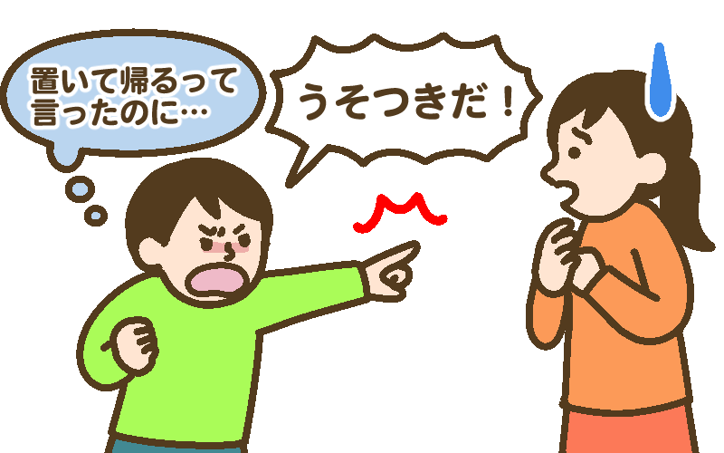 一方で、先述した通りASDのお子さまは文字通りに言葉を受け止めるため、「置いて帰ると言ったのに、置いていかれていない」=「嘘をつかれた」と捉えてしまいます。ASDのお子さまにとって言行不一致(言っていることと行動に矛盾があること)は「嘘」なのです。