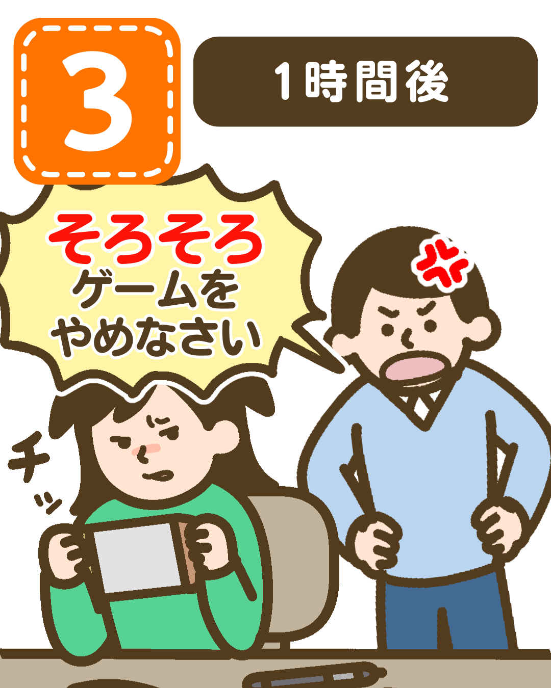 保護者の方は堪忍袋の緒が切れてゲームを取り上げていますが、お子さまは急に行動を停止させられてパニックになっています。