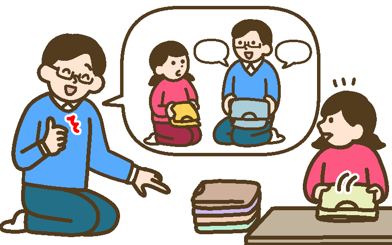 保護者の方は、過剰におびえるお子さまや周囲の様子を見て、慌ててお子さまを連れて帰ろうとしていますが、それに対してお子さまは腑に落ちない表情を浮かべています。