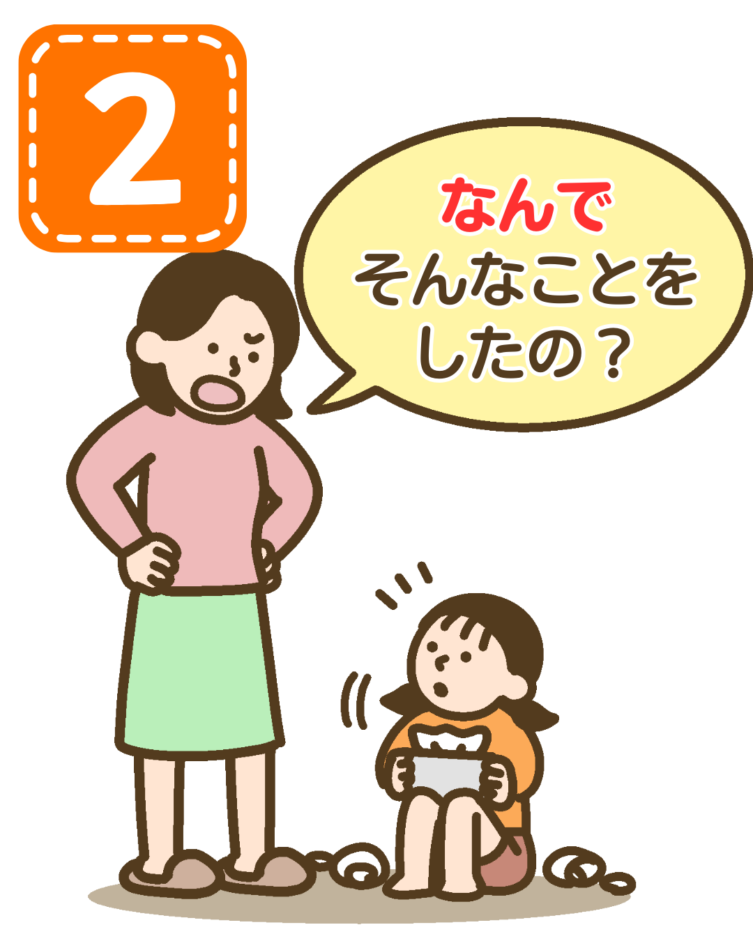 叱る前に、まずは保護者の方が冷静になって、お子さまを落ち着かせることが大切です。