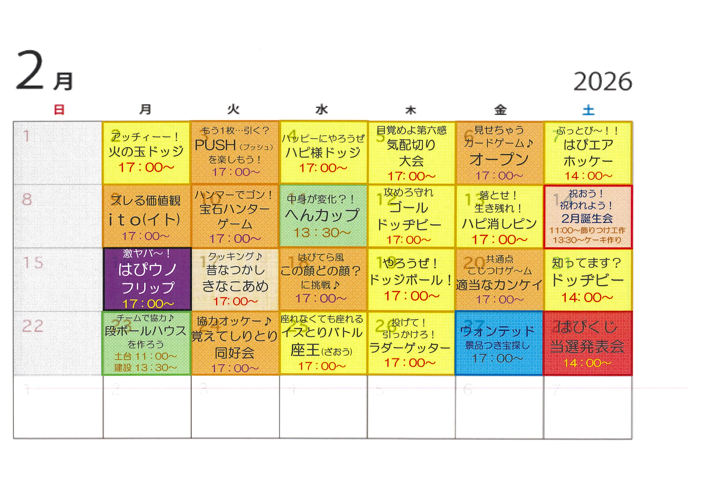 東府中教室 2月イベントカレンダー