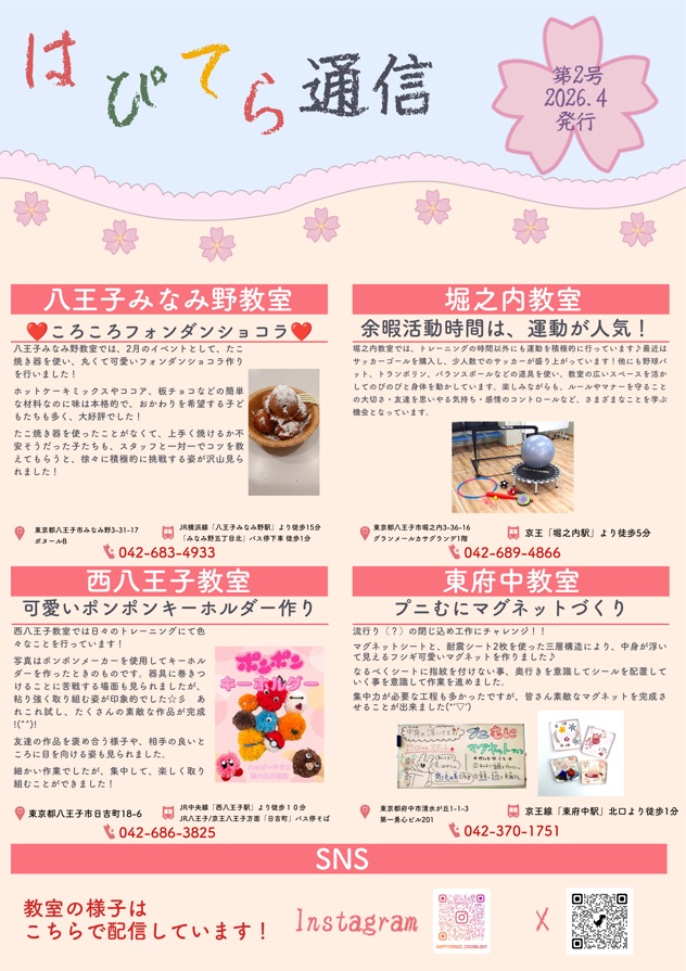 今回は、各教室のイベントや余暇活動時間の様子についてお伝えします。