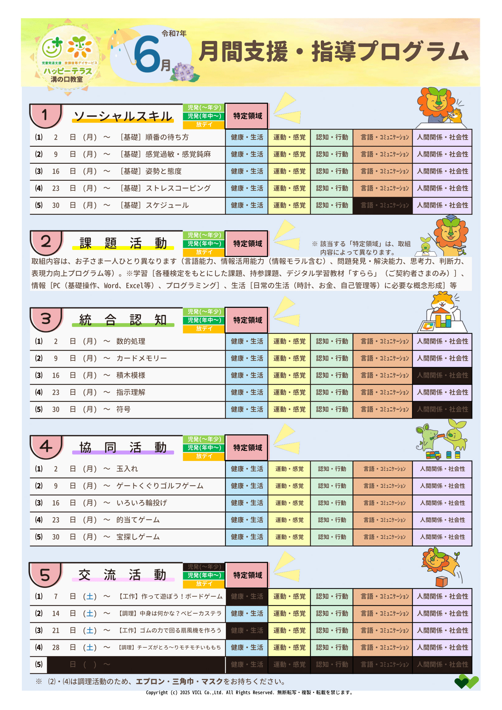 溝の口教室 令和7年6月度 月間支援・指導プログラム