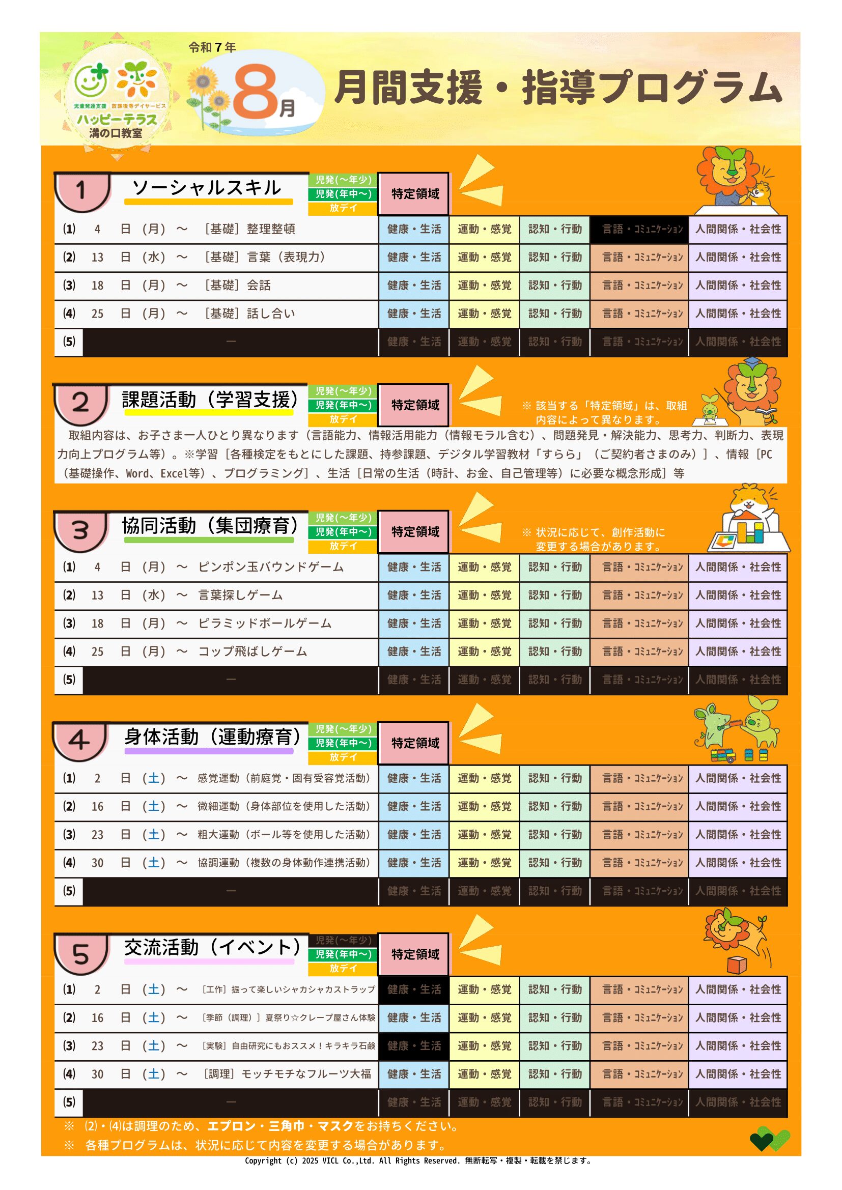 令和7年8月度 月間支援・指導プログラム