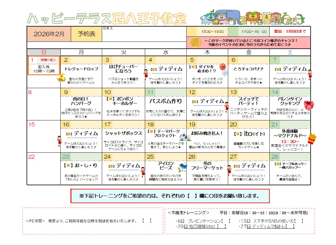 西八王子教室 2月イベントのお知らせ