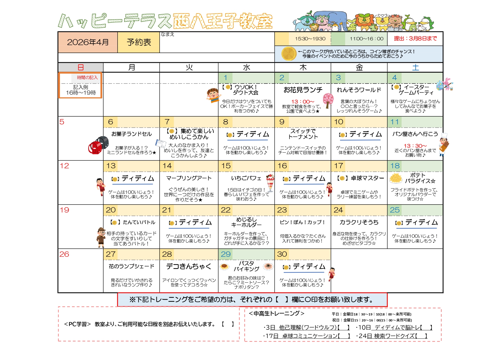 西八王子教室 4月イベントのお知らせ
