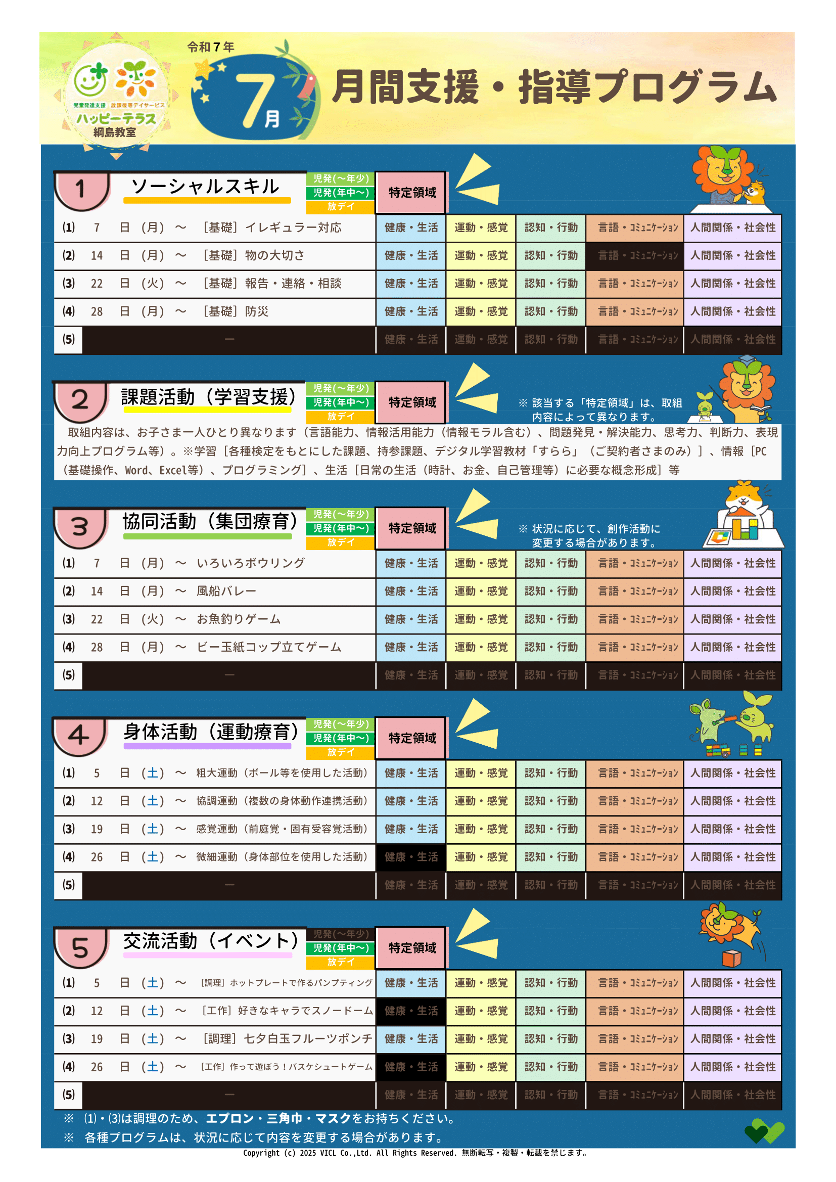 綱島教室 令和7年7月度 月間支援・指導プログラム