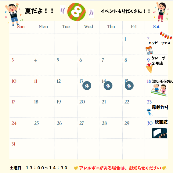 9日(土) 大好評につき第2弾!ハピテラクレープ2号店