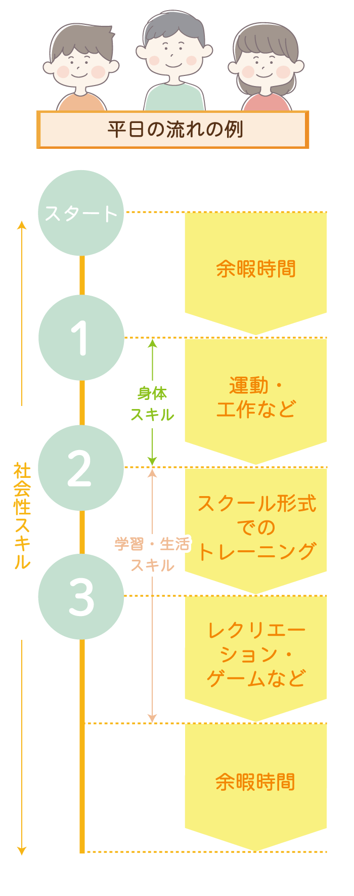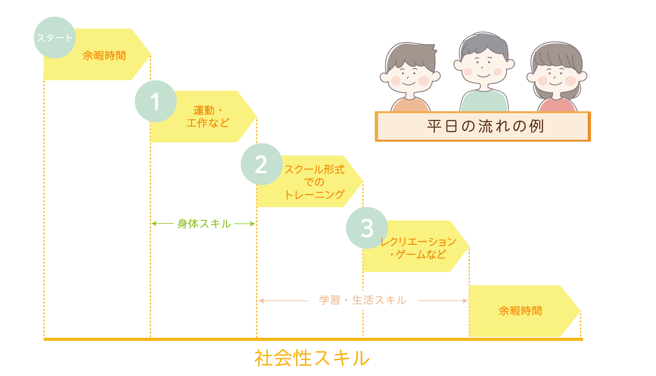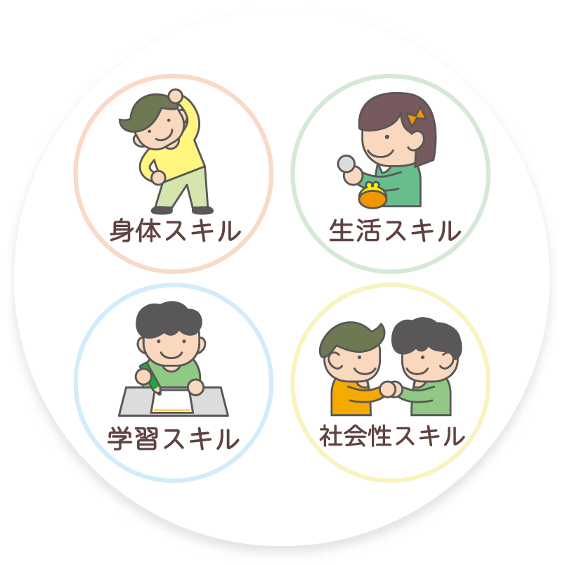 「身体」「学習」「生活」「社会性」の4つのスキルをトレーニングしていきます。