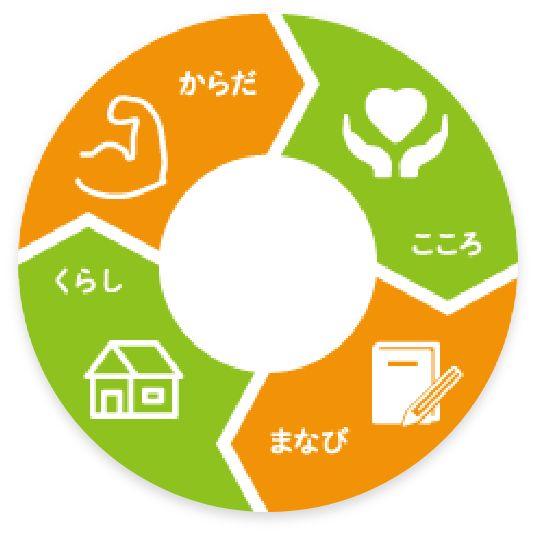- 「こころ」 様々な活動を経験し、他者と触れ合うことで、心の豊かさを育みます。